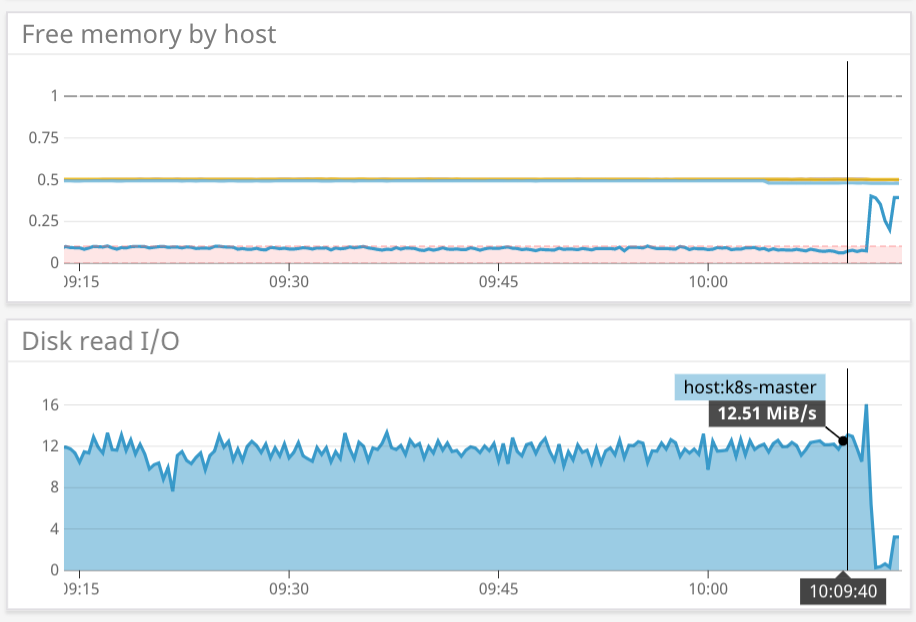 It was also the cause of a high read activity on the master node at around 12MB/s and problems with a CronJob that wasn’t properly scheduled.